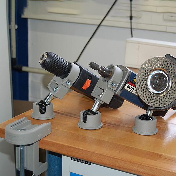 Über das patentierte Schnellwechselsystem können Sie optional weiteres Zubehör einsetzen. Ideal zum Spannen, Drechseln und Schnitzen. Befestigen Sie Bohrmaschinen, Schraubstöcke, Winkelschleifer, Leuchten und vieles mehr.