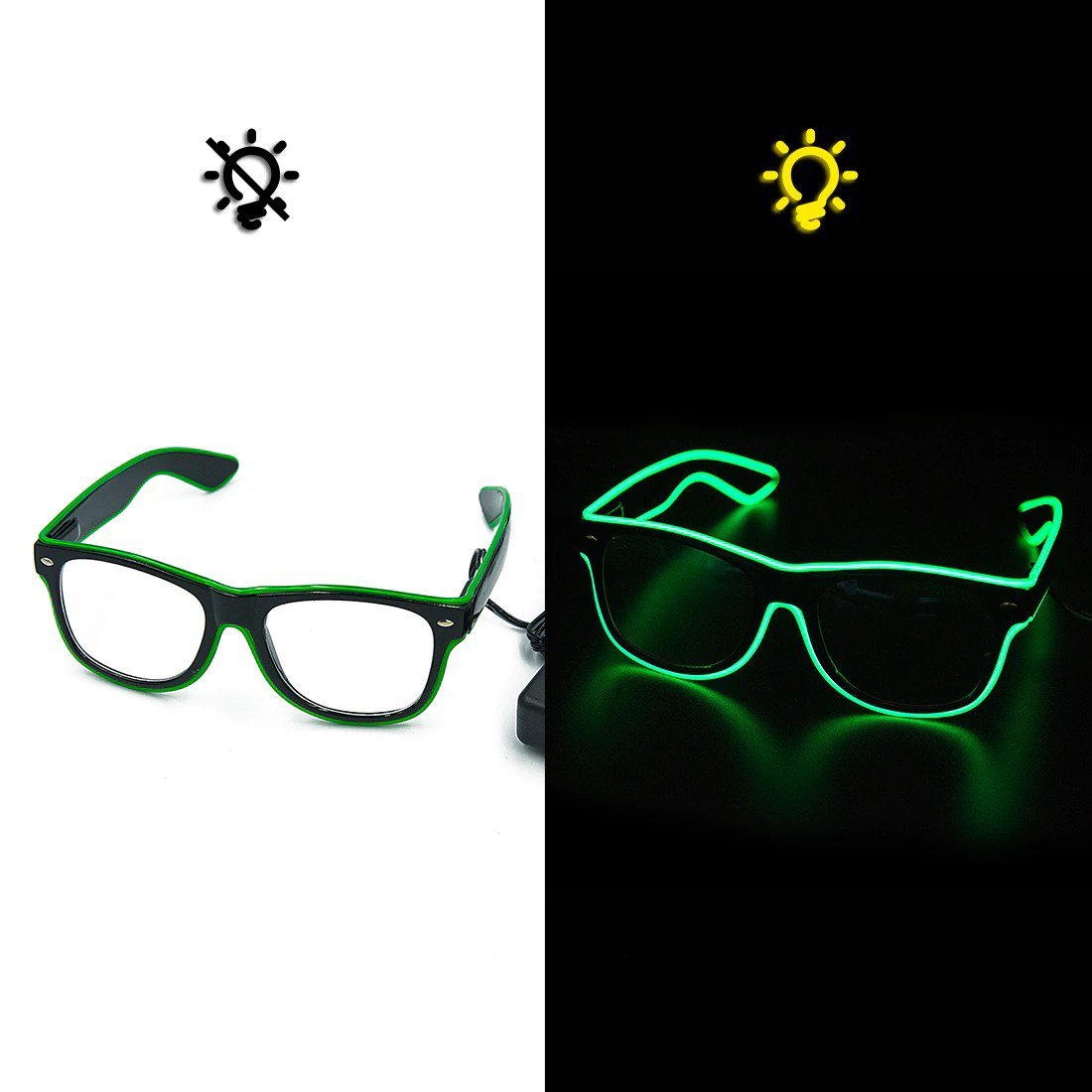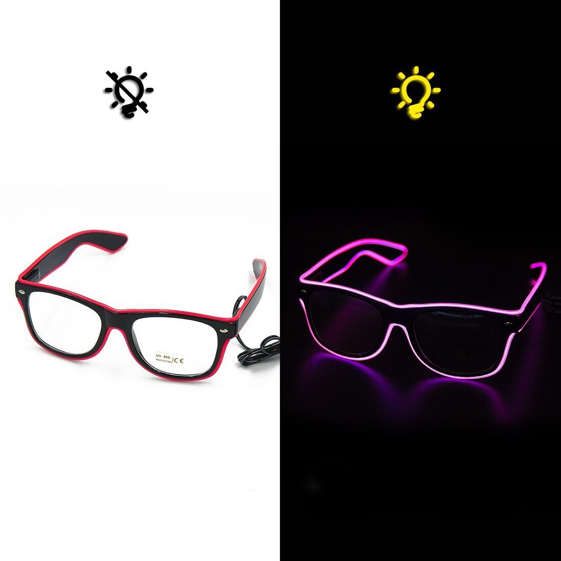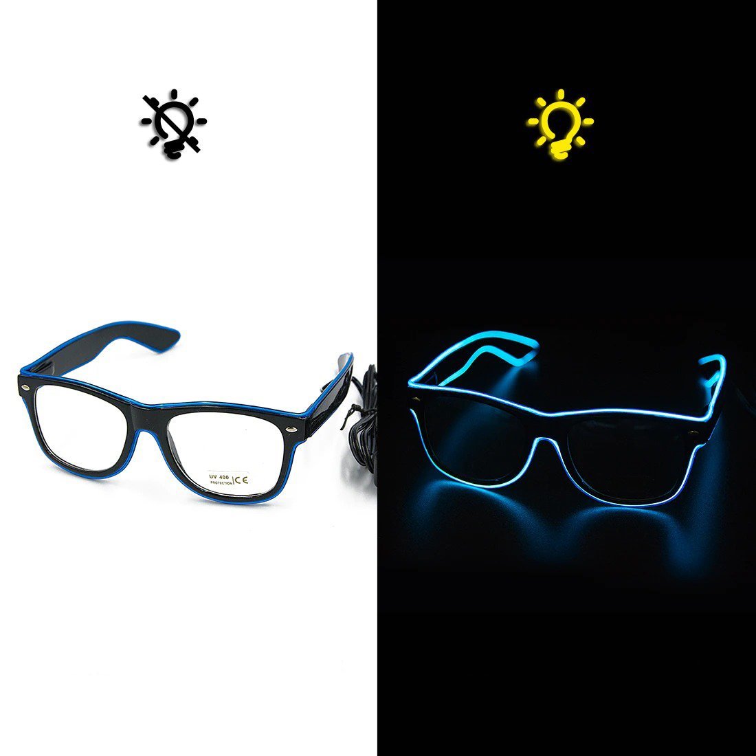 COOL & QUALITATIV. Die Neon Party Sonnenbrille verfügt dank hoch-qualitativem EL Kabel über geniale visuelle Effekte und eine länger anhaltende Leuchtzeit im Dunkeln. Die Brille hat einen stylischen Rahmen und das ca 90cm lange Kabel ermöglicht es, das Battery-Pack problemlos in Hosentaschen verschwinden zu lassen. Ausgestattet mit drei verschiedenen Leucht-Funktionen – durchgehend, langsam und schnell – ist die Neon Party Sonnenbrille ein garantiertes Highlight an allen Events.